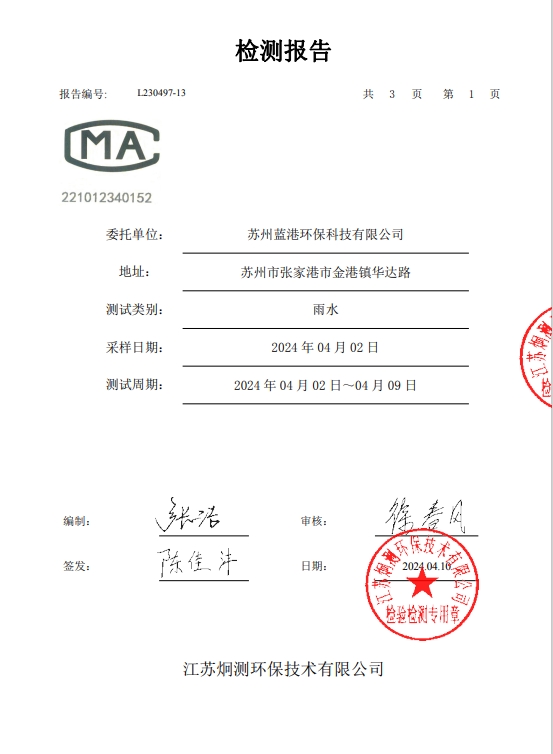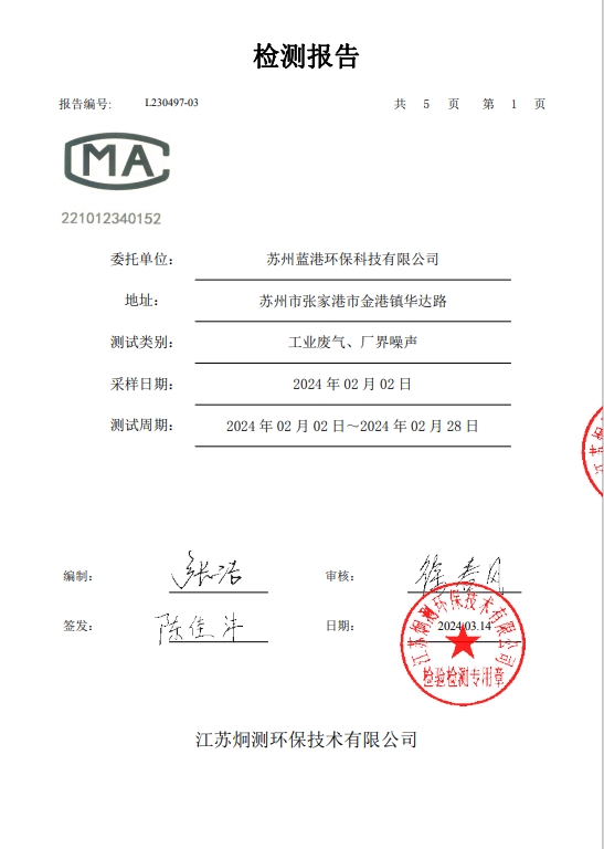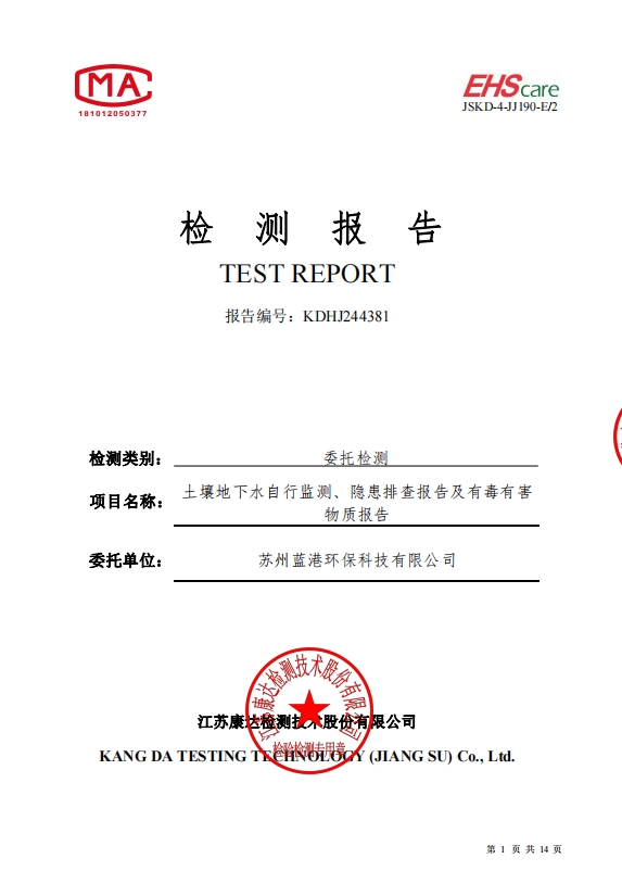 蘇州藍港環??萍加邢薰緳z測報告已公示,詳情請查...